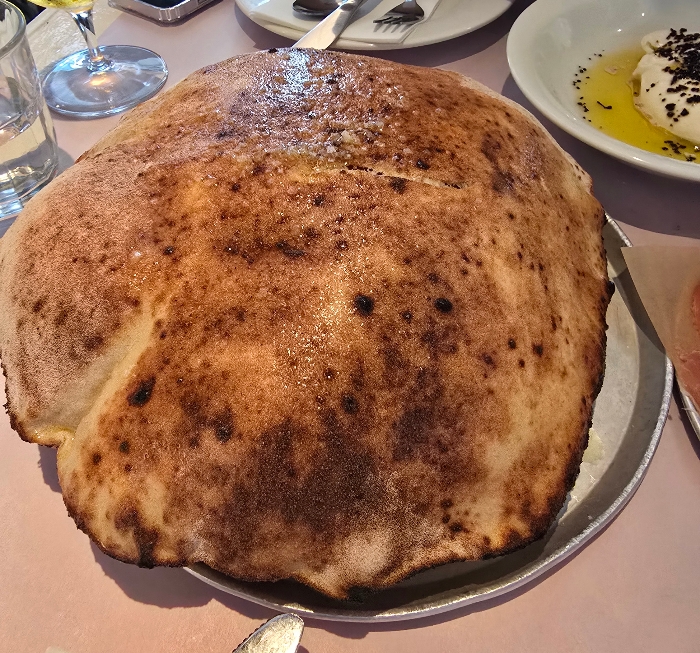 바 토티스의 시그니처 메뉴이자 거의 모든 테이블에 올라오는 기본 메뉴예요. 직접 구운 화덕빵은 겉은 바삭, 속은 쫄깃하며 따뜻하게 서빙됩니다.